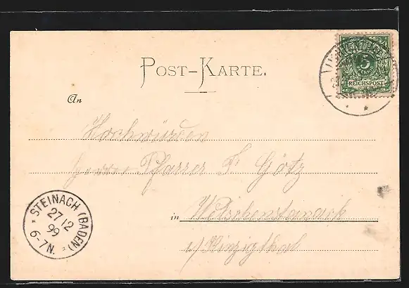 alte Ansichtskarte, gelaufen 1899, guter Zustand