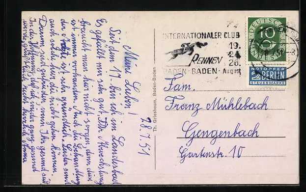 alte Ansichtskarte, gelaufen 1951, guter Zustand