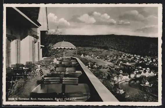 AK Baden, Blick v. Terrassen-Restaurant Hertenstein auf den Ort