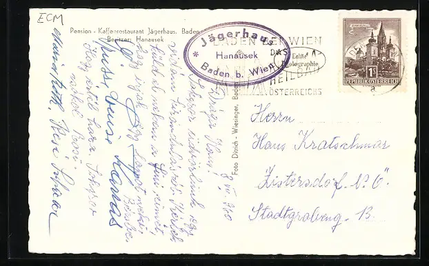 AK Baden, Gasthaus Jägerhaus Hanauseck