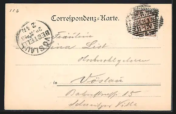 alte Ansichtskarte, gelaufen 1898, Stempelspur, guter Zustand