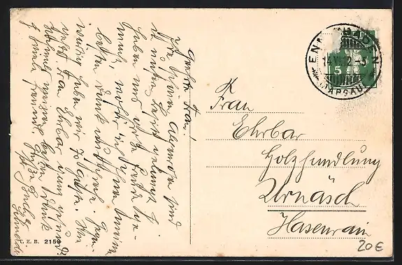 gelaufen 1912, Eckknick re. oben, guter Zustand