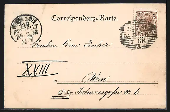 alte Ansichtskarte, gelaufen 1898, Eckknick re. oben, guter Zustand