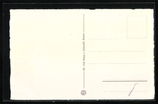 Personenbezogene Daten auf der Rückseite der Karte wurden durch blauen Textmarker unkenntlich gemacht. Die blauen Stellen sind auf die Vorderseite durchgeweicht und wirken sich negativ auf das Postkartenfoto aus