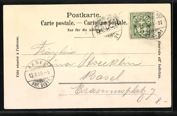 alte Ansichtskarte, gelaufen 1900, Eckknick unten rechts, guter Zustand