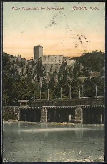 AK Baden, Ruine Rauhenstein im Helenenthal