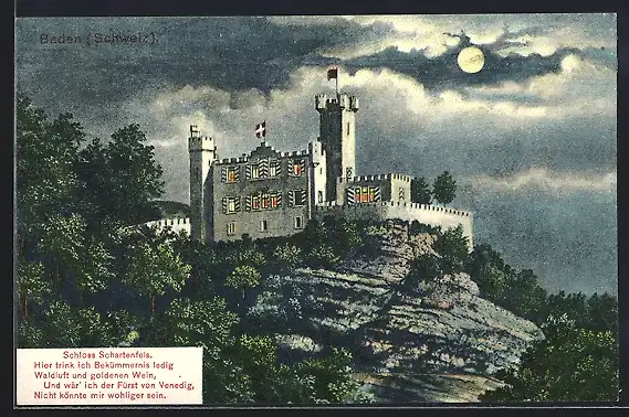 AK Baden, Schloss Schartenfels bei Nacht