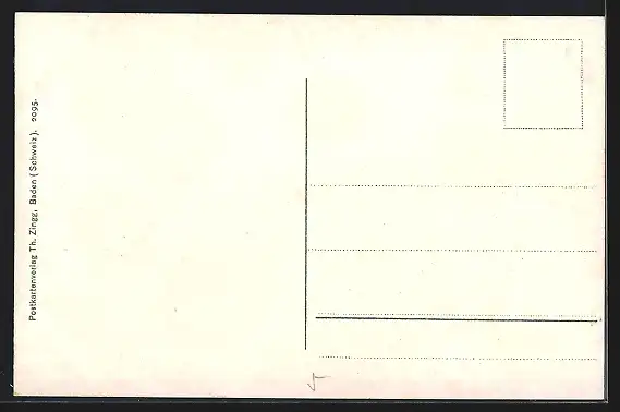 Personenbezogene Daten auf der Rückseite der Karte wurden durch blauen Textmarker unkenntlich gemacht. Die blauen Stellen sind auf die Vorderseite durchgeweicht und wirken sich negativ auf das Postkartenfoto aus