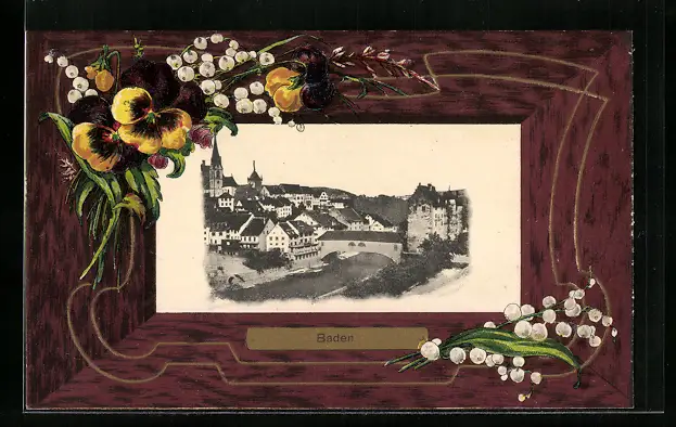 AK Baden, Stadtansicht aus der Vogelschau