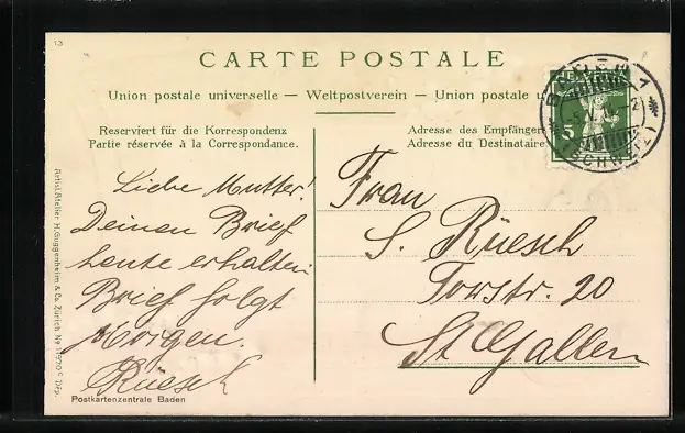alte Ansichtskarte, gelaufen 1914, guter Zustand