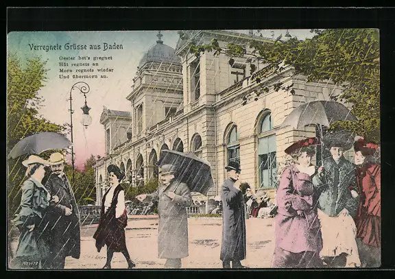 AK Baden, Verregnete Grüsse aus Baden, Meteorologie