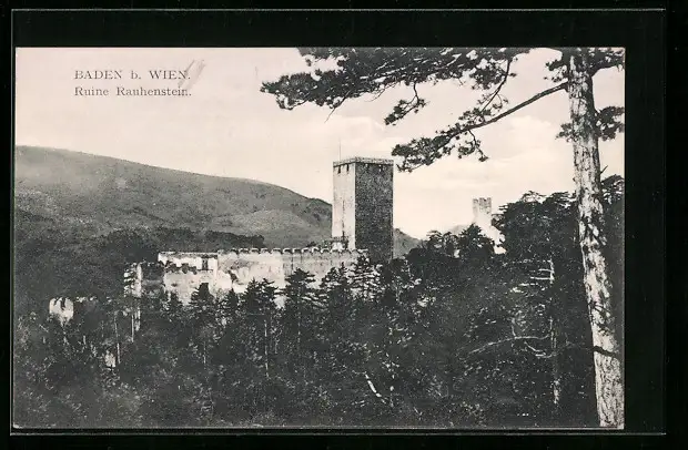 AK Baden b. Wien, Blick auf Ruine Rauhenstein