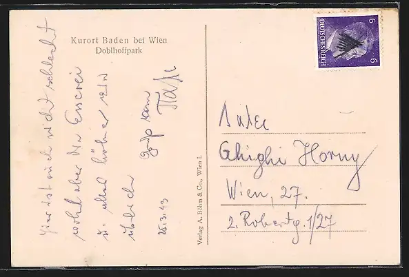 ungelaufen, Rückseite beschrieben 1943, guter Zustand