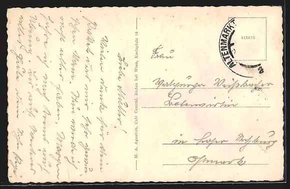 alte Ansichtskarte, gelaufen, Briefmarke entfernt, guter Zustand