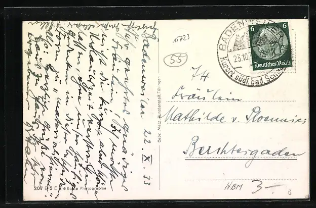 gelaufen 1933, rückseitig Klebe- und Papierreste, guter Zustand
