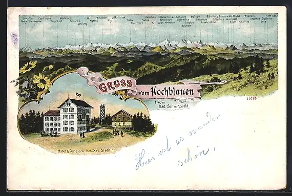 AK Badenweiler, Gasthaus Hochblauen, Bergpanorama