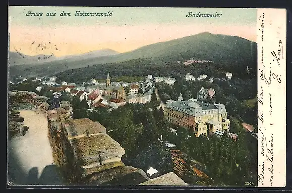 AK Badenweiler /Schwarzwald, Blick auf den Ort von einer Burg