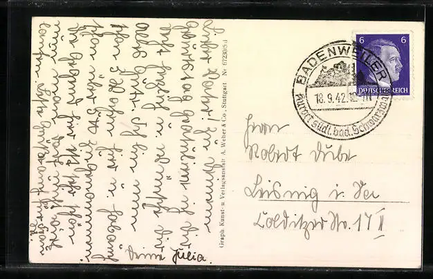 alte Ansichtskarte, gelaufen 1942, guter Zustand
