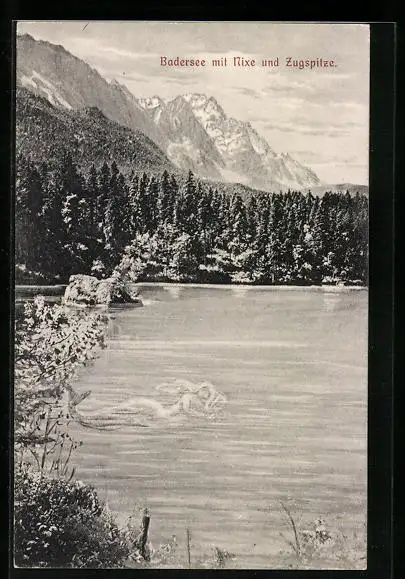 AK Badersee, Badersee mit Nixe und Zugspitze