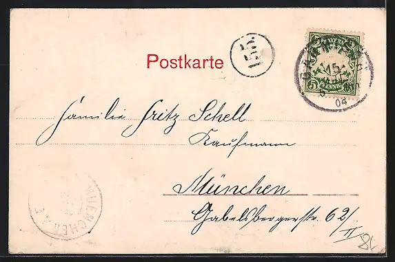 alte Ansichtskarte, gelaufen 1904, Stempelspur, guter Zustand