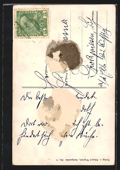 alte Ansichtskarte, gelaufen, rückseitig Klebe- und Papierreste, guter Zustand