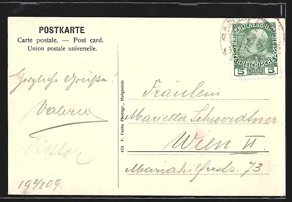 alte Ansichtskarte, gelaufen 1909, guter Zustand