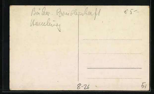 Personenbezogene Daten auf der Rückseite der Karte wurden durch blauen Textmarker unkenntlich gemacht. Die blauen Stellen sind auf die Vorderseite durchgeweicht und wirken sich negativ auf das Postkartenfoto aus