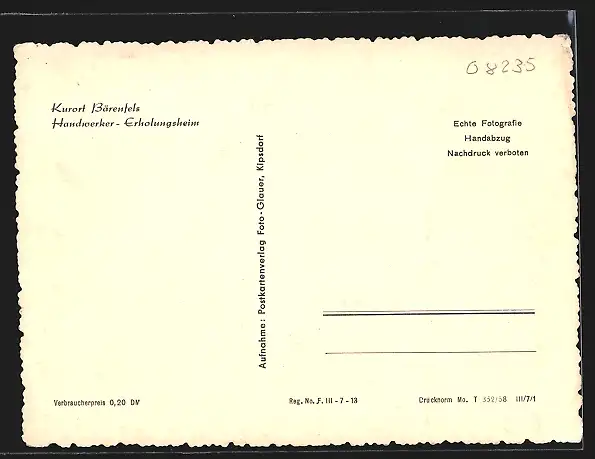 AK Bärenfels, Handwerker-Erholungsheim, Speisesaal