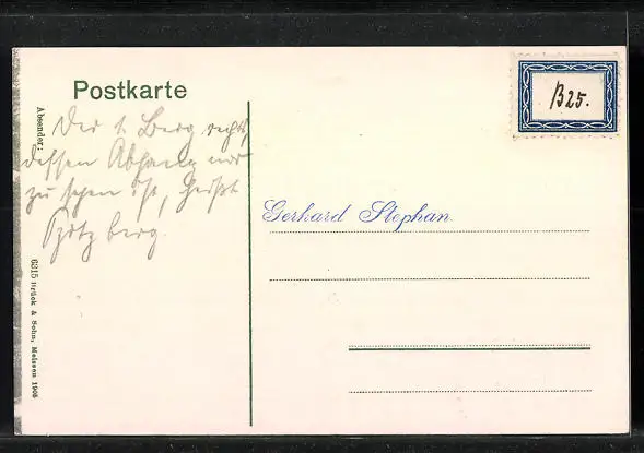 alte Ansichtskarte, ungelaufen, rückseitig Klebe- und Papierreste, guter Zustand