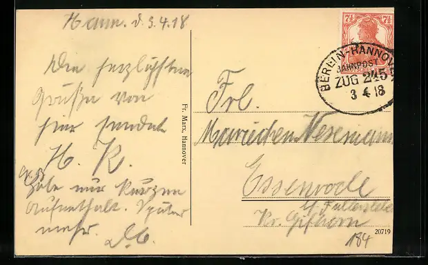 AK Bahnpoststempel Berlin-Hannover, Zug 245
