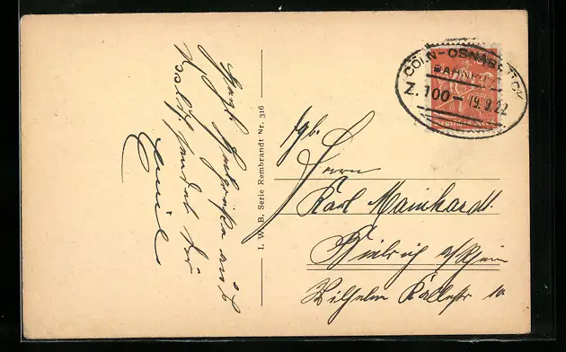 AK Bahnpoststempel Cöln-Osnabrück, Z. 100
