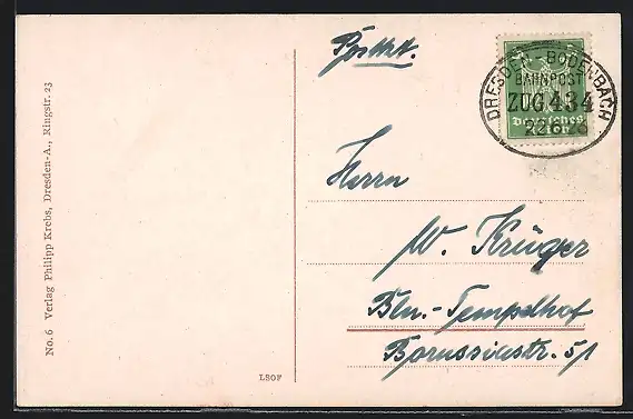 AK Bahnpoststempel Dresden-Bodenbach, Zug 434