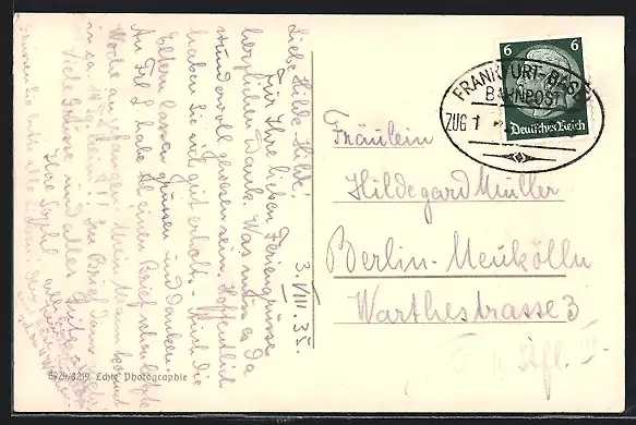 AK Bahnpoststempel Frankfurt-Basel, Zug 1??