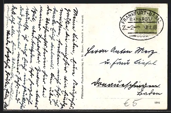 AK Bahnpoststempel Frankfurt-Basel, Zug 2-