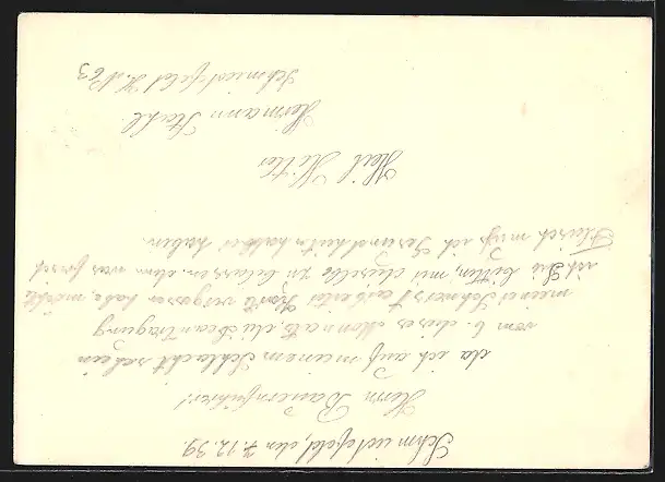 Personenbezogene Daten auf der Rückseite der Karte wurden durch blauen Textmarker unkenntlich gemacht. Die blauen Stellen sind auf die Vorderseite durchgeweicht und wirken sich negativ auf das Postkartenfoto aus
