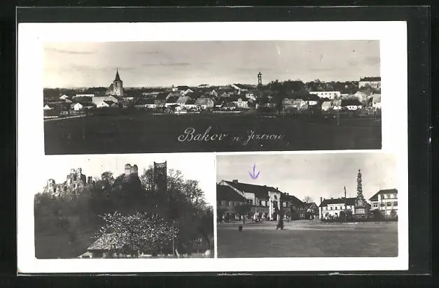 AK Bakov n. Jizerou, Burgruine, Marktplatz, Panorama