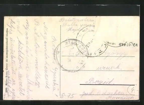 Personenbezogene Daten auf der Rückseite der Karte wurden durch blauen Textmarker unkenntlich gemacht. Die blauen Stellen sind auf die Vorderseite durchgeweicht und wirken sich negativ auf das Postkartenfoto aus