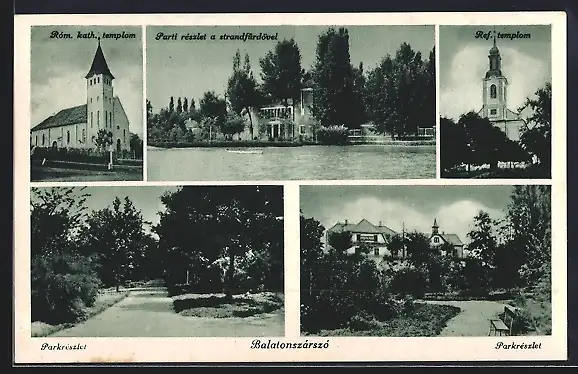 AK Balatonszarszo, Rom kath. templom, ref. templom, Perkreszlet