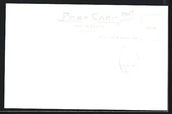 Personenbezogene Daten auf der Rückseite der Karte wurden durch blauen Textmarker unkenntlich gemacht. Die blauen Stellen sind auf die Vorderseite durchgeweicht und wirken sich negativ auf das Postkartenfoto aus