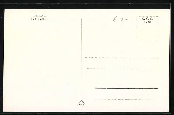 Personenbezogene Daten auf der Rückseite der Karte wurden durch blauen Textmarker unkenntlich gemacht. Die blauen Stellen sind auf die Vorderseite durchgeweicht und wirken sich negativ auf das Postkartenfoto aus