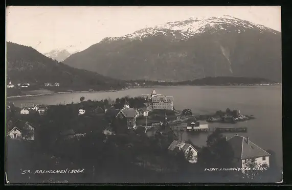 AK Balholmen i Sogn., Teilansicht mit Bergen