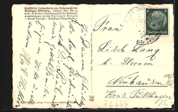 AK Balingen, Ansicht der Gaststätte Lochenheim am Lochenpass