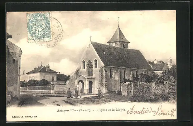 AK Ballainvilliers, L`Eglise et la Mairie
