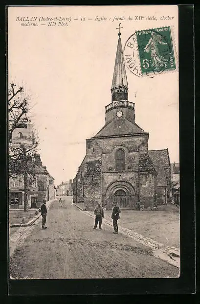AK Ballan, Église, facade du XII siècle, clocher moderne