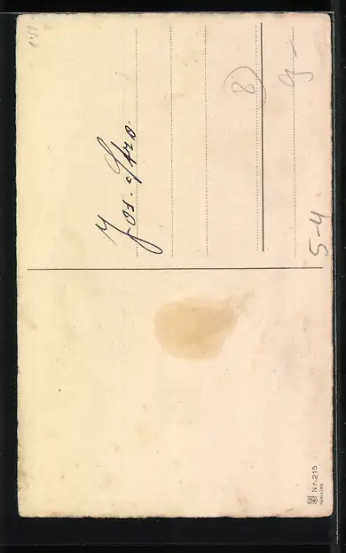 Personenbezogene Daten auf der Rückseite der Karte wurden durch blauen Textmarker unkenntlich gemacht. Die blauen Stellen sind auf die Vorderseite durchgeweicht und wirken sich negativ auf das Postkartenfoto aus