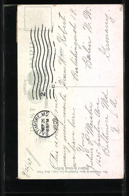 alte Ansichtskarte, gelaufen 1909, Stempelspur, guter Zustand