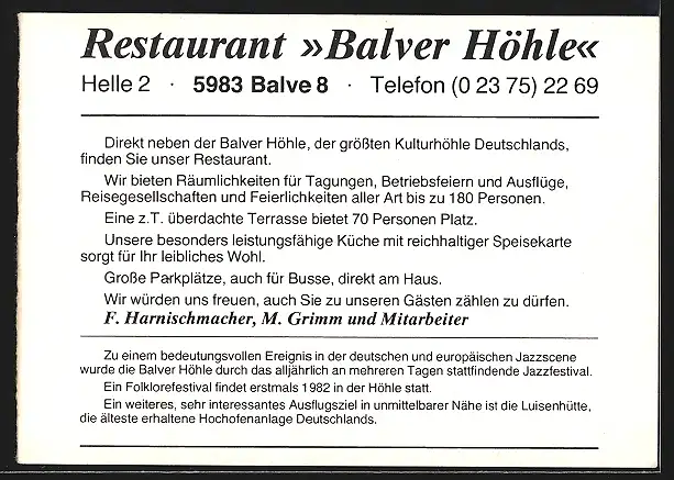 AK Balve, Restaurant Balver Höhle, Helle 2