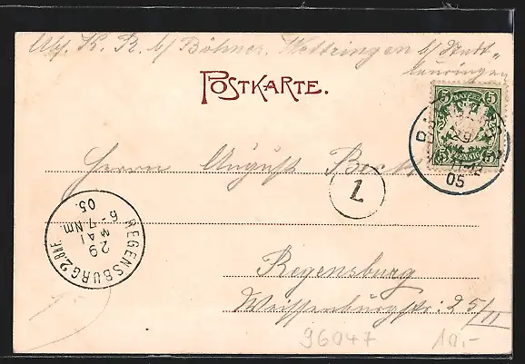 alte Ansichtskarte, gelaufen 1905, Stempelspur, guter Zustand