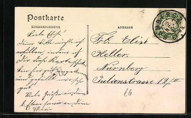alte Ansichtskarte, gelaufen 1905, guter Zustand