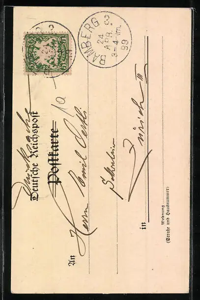 alte Ansichtskarte, gelaufen 1899, Stempelspur, guter Zustand